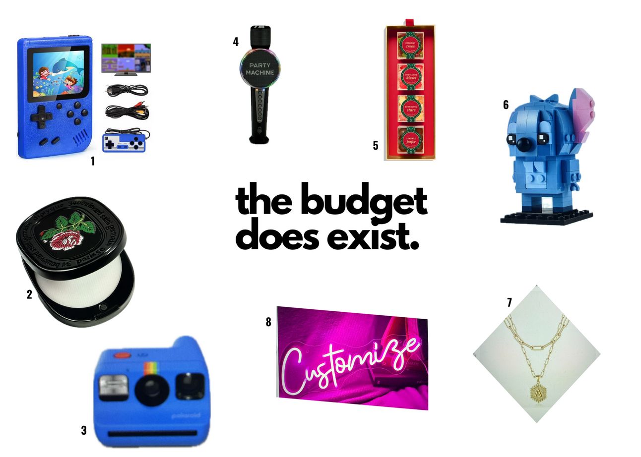 1. Link - Handheld Video Game Console 400 Classic Retro Games ($24.99) 2. Diptyque - Eau Rose Refillable Solid Perfume ($75) 3. Polaroid - Go Generation 2 Starter Set ($89.99) 4. Singing Machine - Portable Bluetooth Speaker with Microphone ($21.66) 5. Sugarfina - Nutcracker 4 Piece Candy Bento Box® Duo ($48) 6. Lego - Stitch ($9.99) 7. M MOOHAM - Dainty Gold Initial Necklace ($15.99) 8. NewNeonSign - Custom Neon Sign ($25 for 1 line)