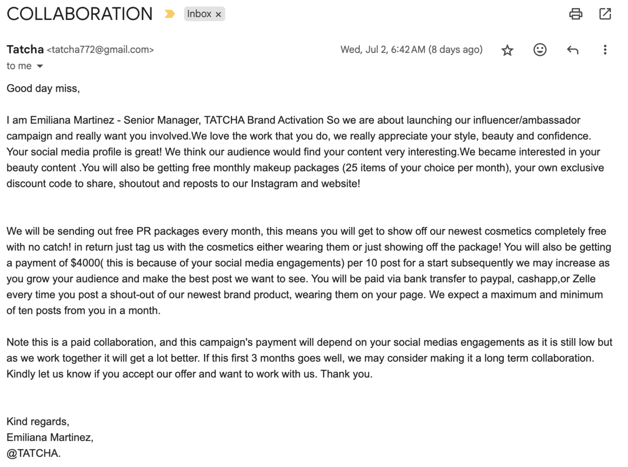 Scammers have now found my account as I get emails like these sometimes. I know this newsletter is slowly gaining popularity but I wasn’t expecting emails from brands just yet haha. I hope no one is falling for an email like the one below.