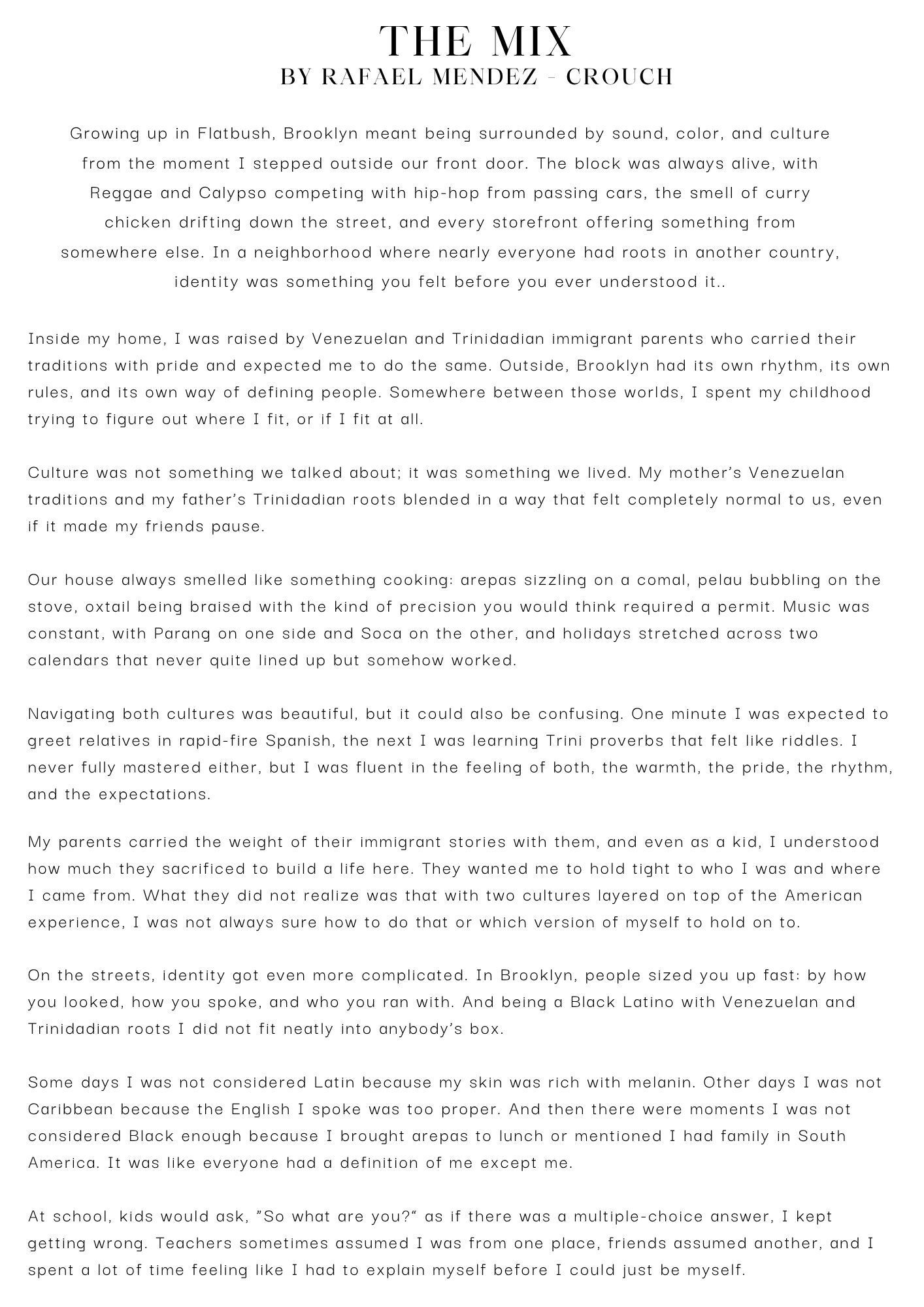 This issue is another short one plus we have our last guest columnist of the year, Rafael Mendez-Crouch whose column touches on how his life experiences shape his relationship with food as a chef.
